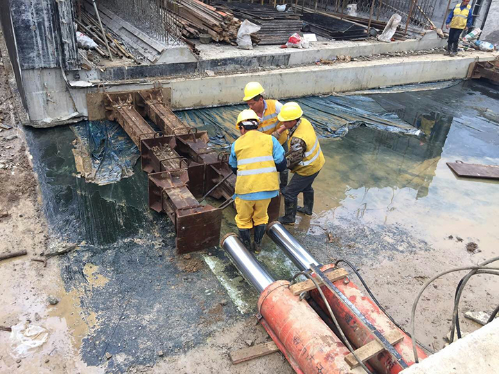 長興月明村箱涵主體頂進近況
