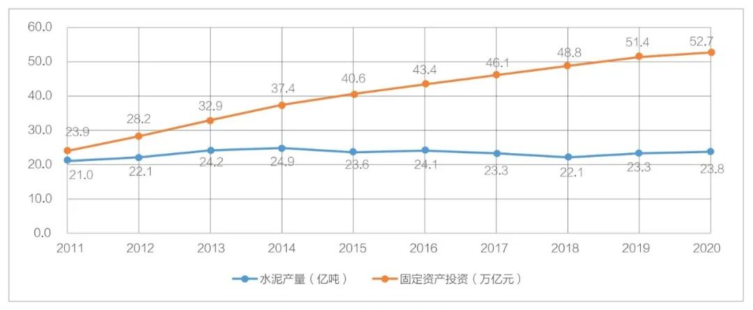 近年水泥產量和固定資產投資情況